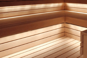 Светильники в раздевалке и моечном отделении, двойная розетка и выключатель. В парном отделении - светильник. Проводка прячется в кабель-канал.